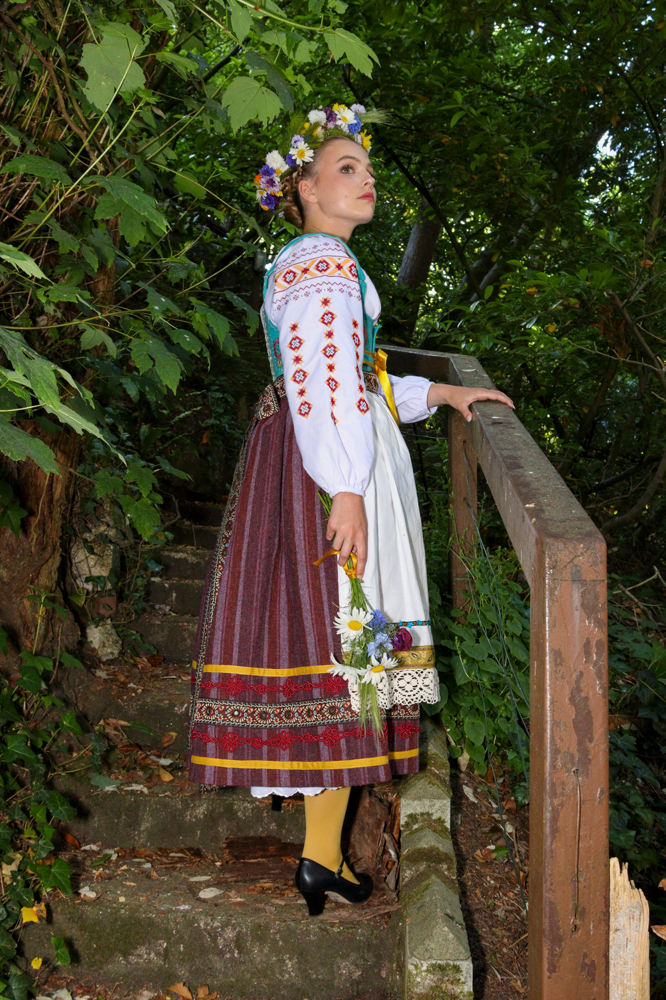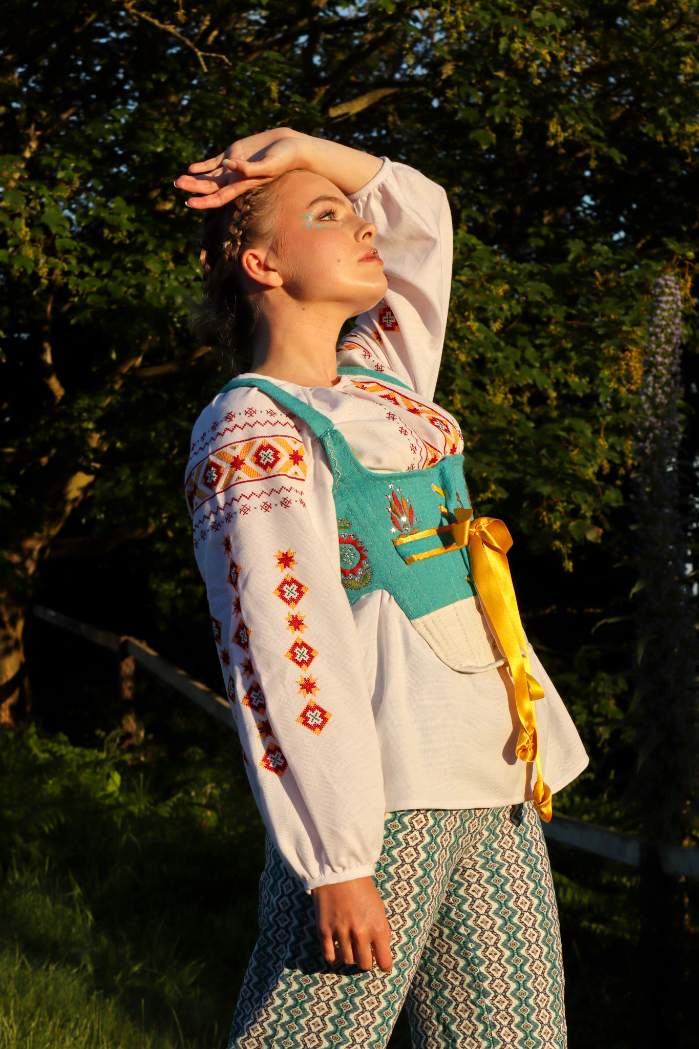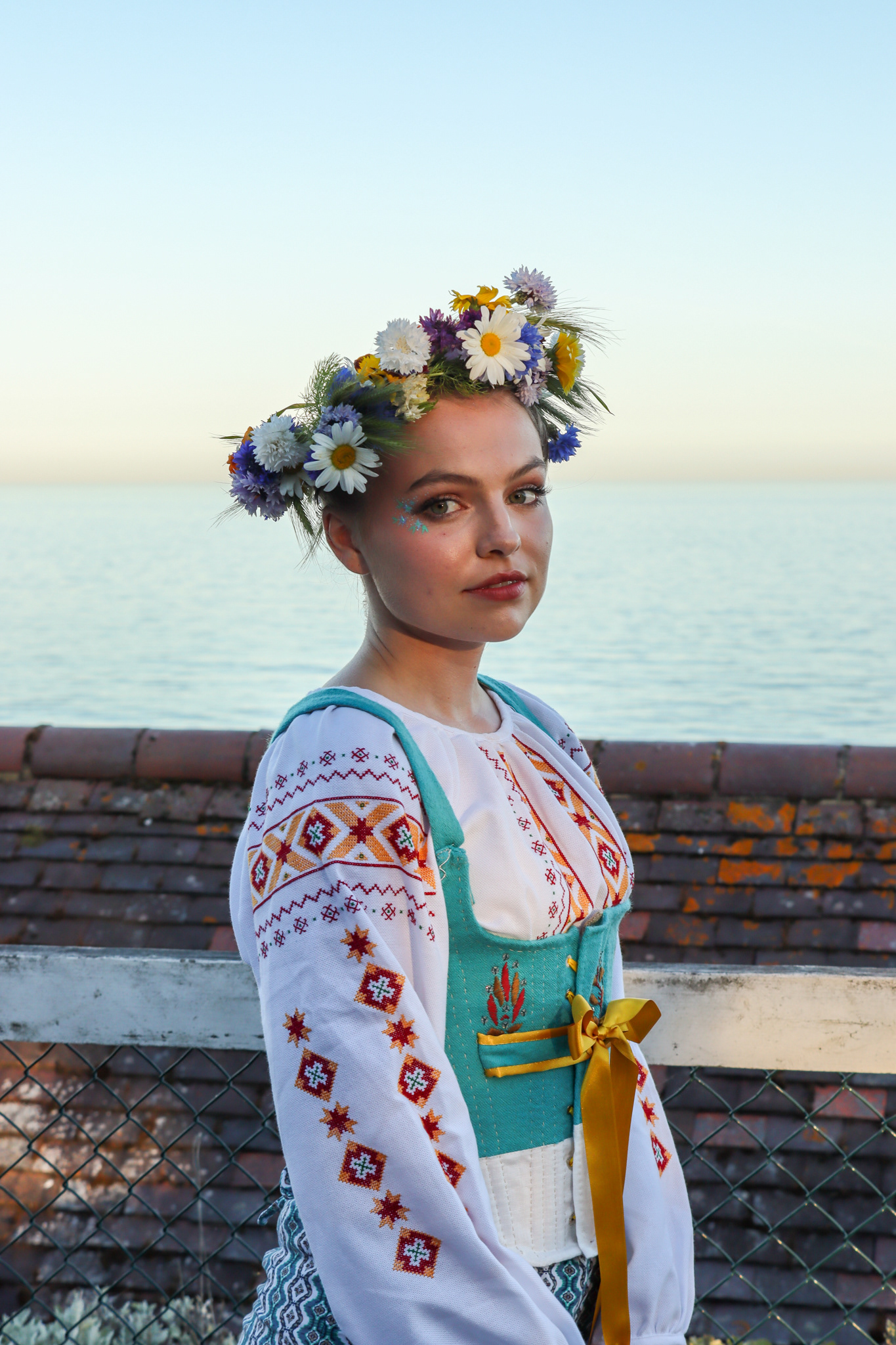 A collaborative shoot, photographing a folk themed costume, inspired by Ukrainian and Polish cultural dress. Costume by Heidi McEvoy-Swift. Modelled by Ele Spreckley. Makeup and hair by Ella Murray.
