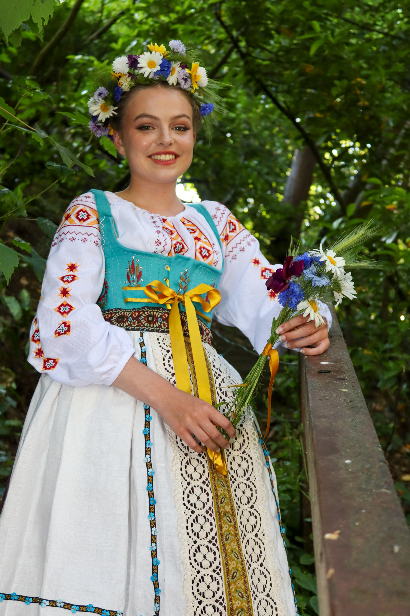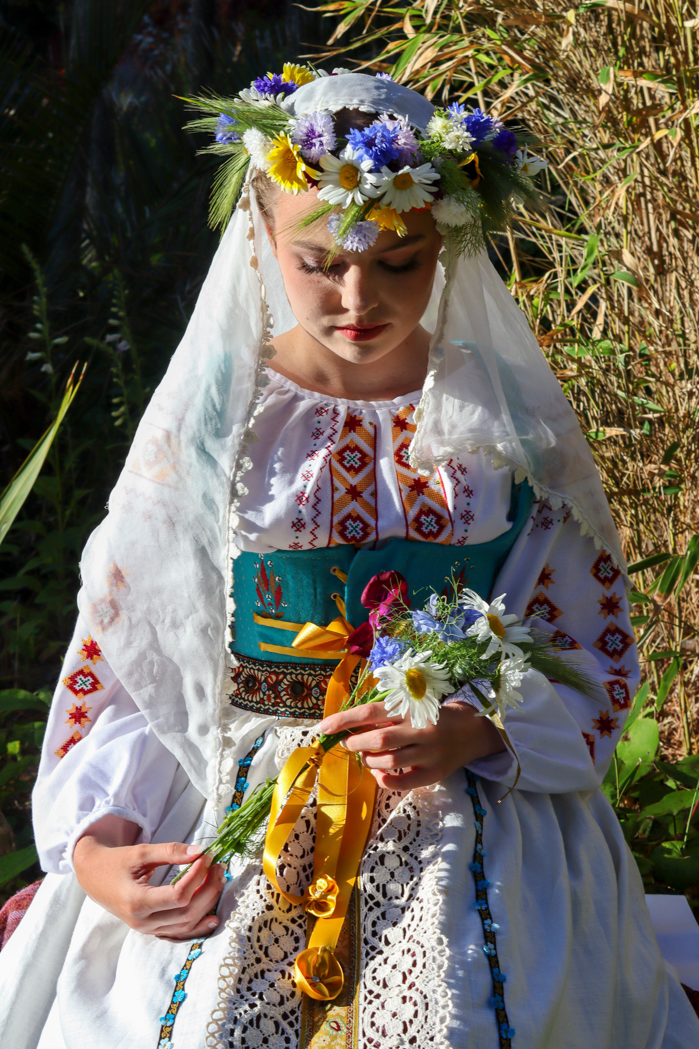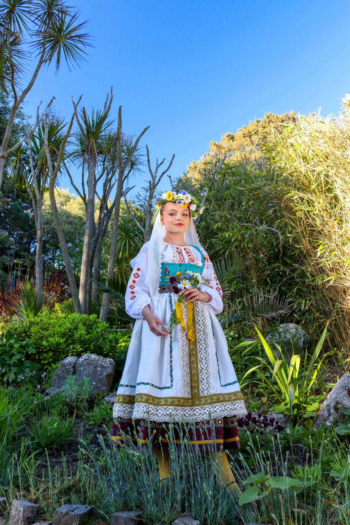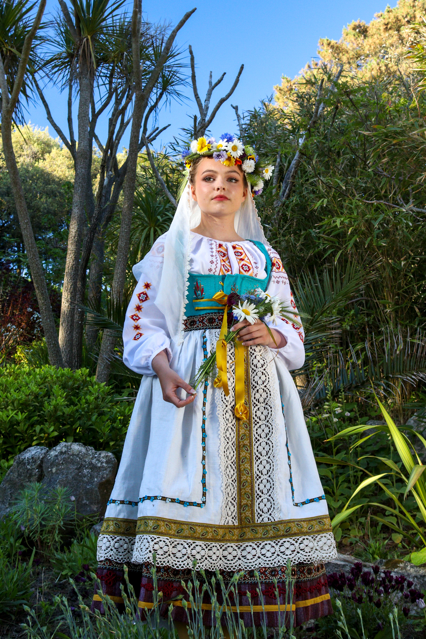 A collaborative shoot, photographing a folk themed costume, inspired by Ukrainian and Polish cultural dress. Costume by Heidi McEvoy-Swift. Modelled by Ele Spreckley. Makeup and hair by Ella Murray.